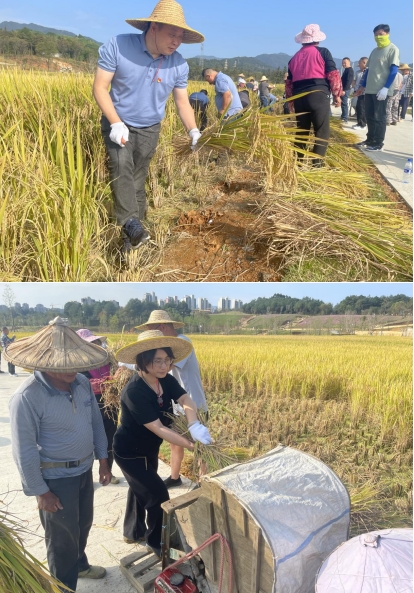 秋意漸寒,稻谷飄香。為深入貫徹習近平總書記關(guān)于實施鄉(xiāng)村振興戰(zhàn)略和糧食安全的重要論述,以學促干,推動學習貫徹習近平新時代中國特色社會主義思想主題教育見行見效,2023年117上午,市政集團黨支部組織全體黨員干部龍州濕地項目開展“傳承蘇區(qū)好作風 四下基層促發(fā)展”主題黨日活動,全面助力稻谷收割工作